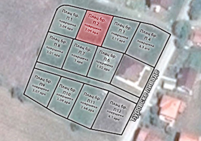 Plac br. 2 – površine 3,09 ara gradsko-građevinskog zemljišta.