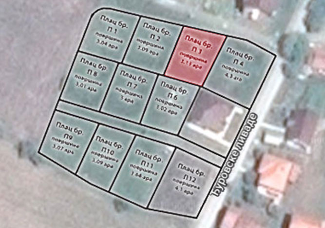 Plac br. 3 – površine 3,13 ara gradsko-građevinskog zemljišta.