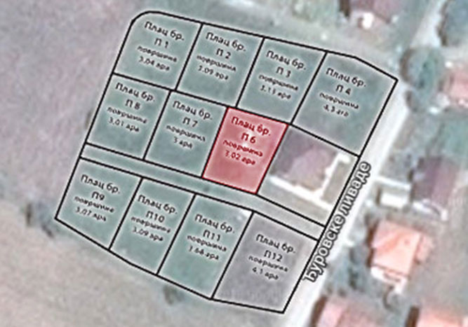 Plac  br. 6 – površine 3,02 ara gradsko-građevinskog zemljišta.