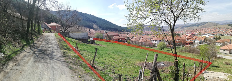 Površina placa oko kuće je 18 ari zemljište je gradsko građevinsko zemljište. Predviđena individualna gradnja srednje gustine naseljenosti.